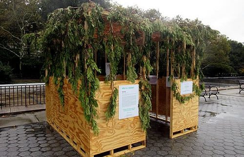 Een tweede opdracht is om zeven dagen in loofhutten te wonen. Dat wil zeggen, om in ieder geval alle maaltijden te nuttigen in een gammele hut met een deels open dak. De reden is om daarmee stil te staan bij het feit dat God het Joodse volk uit Egypte bevrijd heeft. Zoals Hij ook nu ons weer wil bevrijden uit een uitzichtloos samenlevingssysteem.